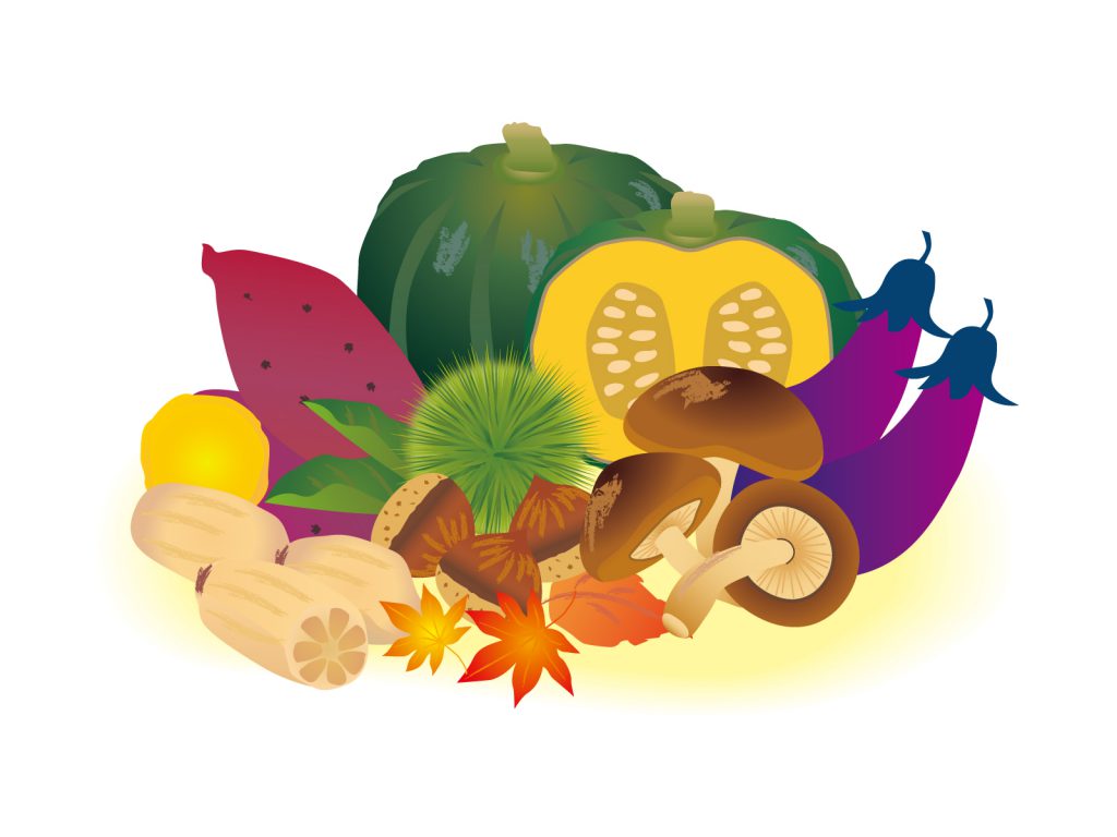 秋はおいしい食材がいっぱい。秋の食材を積極的に取り入れてバランスの良い食事をこころがけてください。旬の食材には、その時期に必要な栄養素が豊富に含まれています。また、よく噛んで食べることで心のバランスを取り、精神が安定します。また、自律神経のバランスをととのえたり、自然免疫力を高めてくれる効果があります。意識して噛む回数を増やしてみてください。