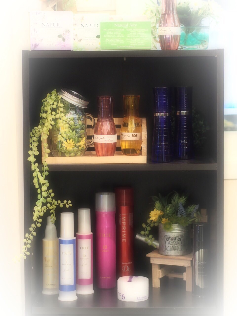 こちらは外からも見えるように今後していきます。 店内に入らないと見えなかった商品なので何が置いてあるかわからない方にもいいと思いメンバーが考えてくれました( ̄▽ ̄) 引っかかりや手触りが気になる方には流さないトリートメントや、乾かしたあとベタベタしたくない方にサラサラになるトリートメントなど、悩みに合わせて私たちがお客様にあった商品を選ばせていただきます。 気になれば是非鎌田までお問い合わせください。 美容院ブロッサム若葉店 0492723366
