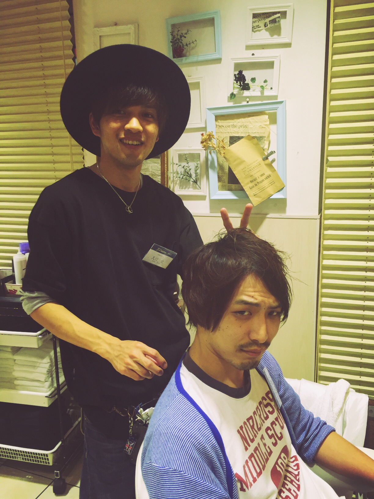 みなさんこんにちは‼️ ブロッサム若葉店の鎌田です。 最近若葉店メンバーのスタイルチェンジがラッシュです。本日もあの男がすっきりしております。 この長い髪から、(ウィッグではないですよ) おー、入江スタイリストが、 こう仕上げました。 中村くん、春を感じるくらいすっきりしていい感じです。 二人ともイケメンですね。 みなさんも是非スタイルチェンジに来てみてください。 入江スタイリストも大人気中( ̄▽ ̄) 美容院若葉店ブロッサム 0492723366