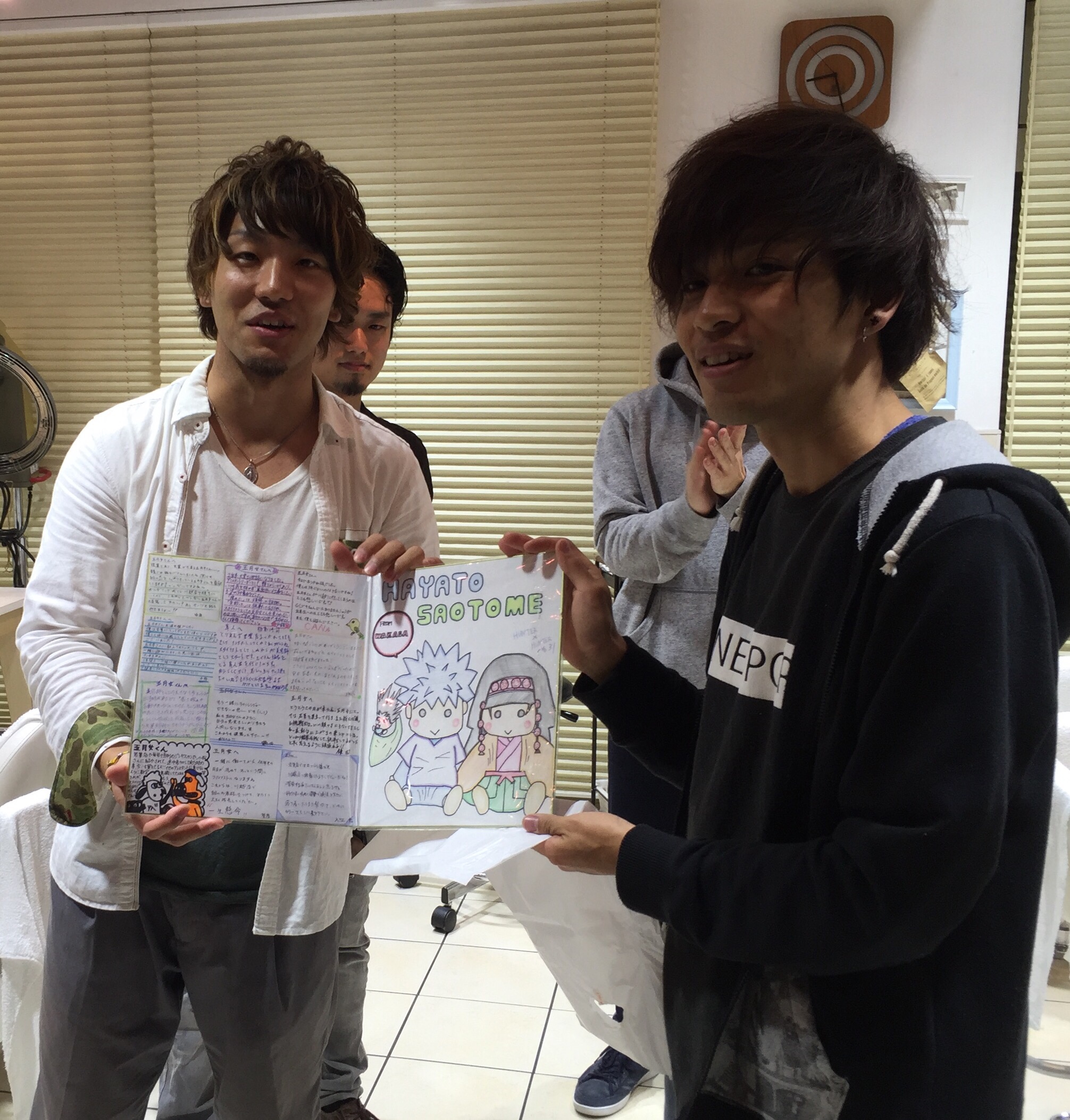 いい顔してます( ̄▽ ̄) そうなんです。川越店でもっと成長出来るようにチャレンジしてくるんですよ。いよいよデビューを迎える五月女が男になった瞬間です。 同じグループなので、若葉店みんなが背中を押してくれました。 なのでいいプレッシャーを背負いもっともっと美容師としても男として成長をしてきてほしいです。 頑張れ五月女〜〜❗️